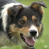 Glen is a very freindly and happy dog, he shows his pleasure by smiling at you in a huge grin of curled lips, at the same time jumping to give yo a lick on the chin. (unfortunately, I am discouraging this action as not everyone would appreciate his enthusiasm.)